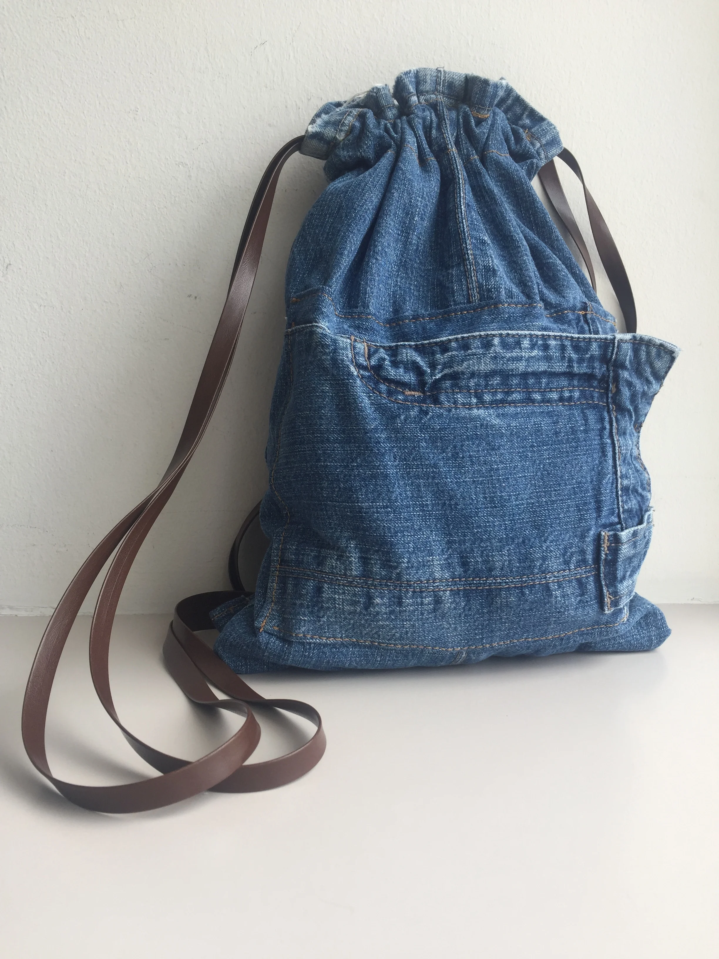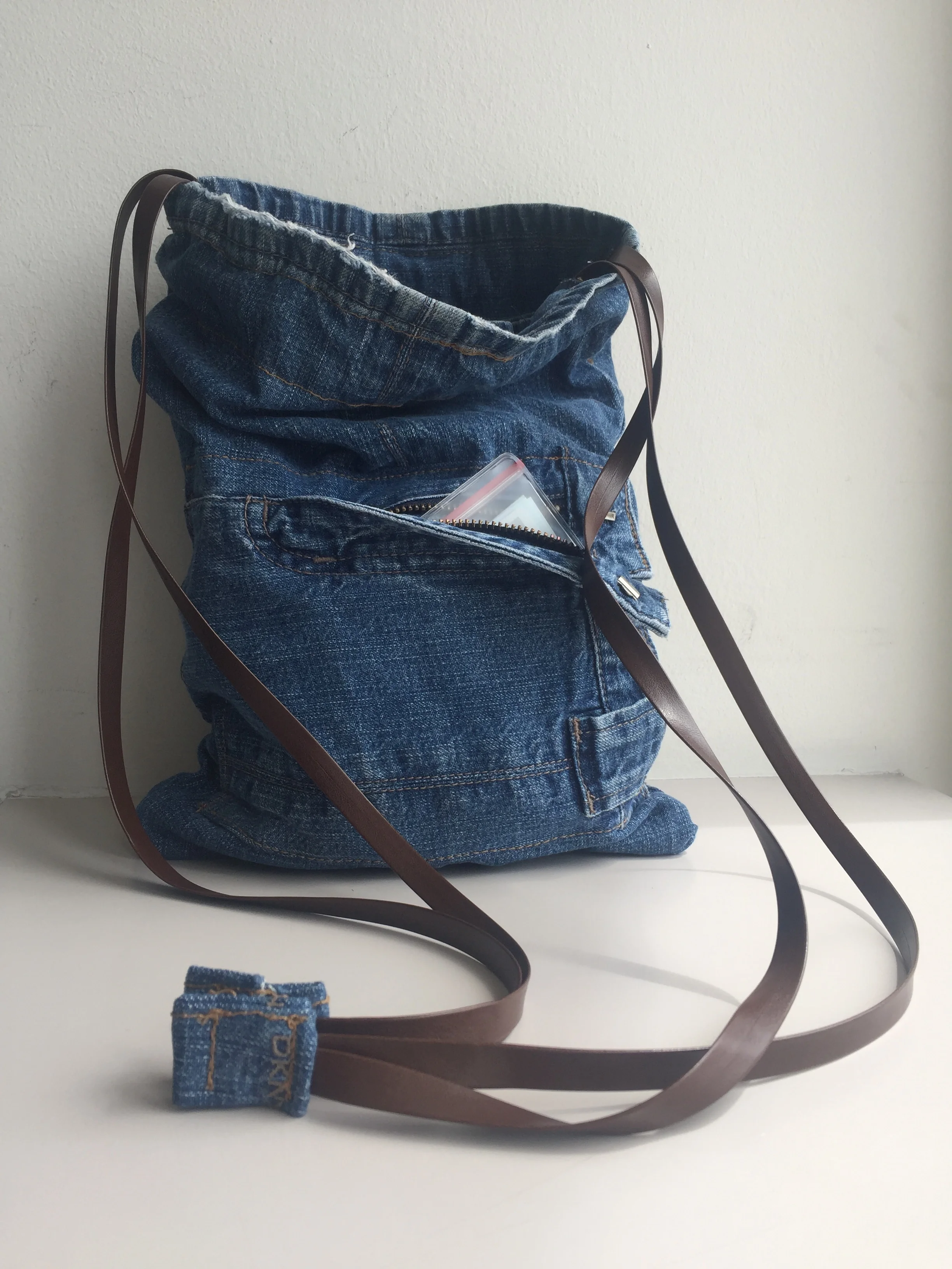It is made from the legs of two pairs of jeans so there are multiple compartments inside.